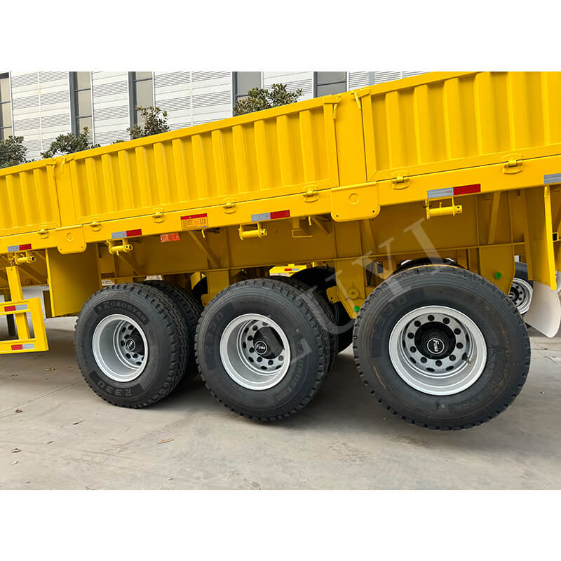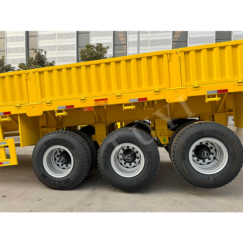Ez a pótkocsi rugalmasan kompatibilis a 2/3/4 tengelyes konfigurációkkal, mechanikus felfüggesztéssel és 12R225-ös gumiabroncsokkal párosítva a stabil vezetés és az erős ütésállóság érdekében. Szabványos, 28 tonnás futóművel van felszerelve a szilárd és megbízható tartás érdekében, a felnik pedig többféle 8.0/9.0×8/12/16-os lehetőséget kínálnak, hogy alkalmazkodjanak a különböző munkakörülményekhez. A királycsap 2 hüvelykes (50 mm) vagy 3,5 hüvelykes (90 mm) JOST specifikációkkal rendelkezik, amely kompatibilis a legtöbb traktorral, és a kétsoros fékrendszer gondoskodik a vezetés biztonságáról. Ezenkívül a méret és a szín az igényeknek megfelelően testreszabható, teljes mértékben kielégítve az ügyfelek személyre szabott szállítási igényeit.