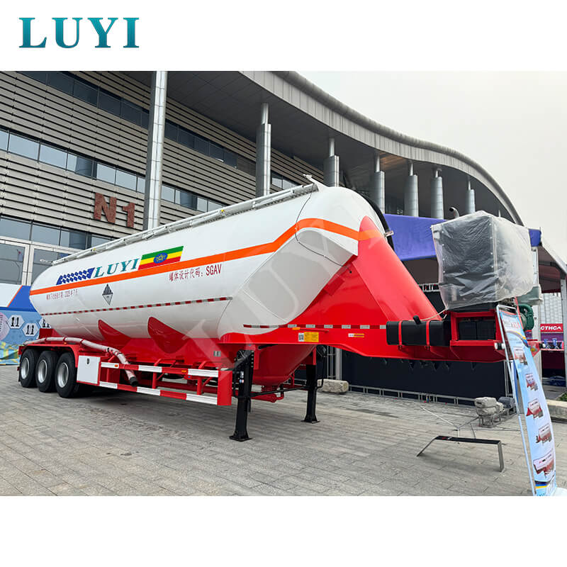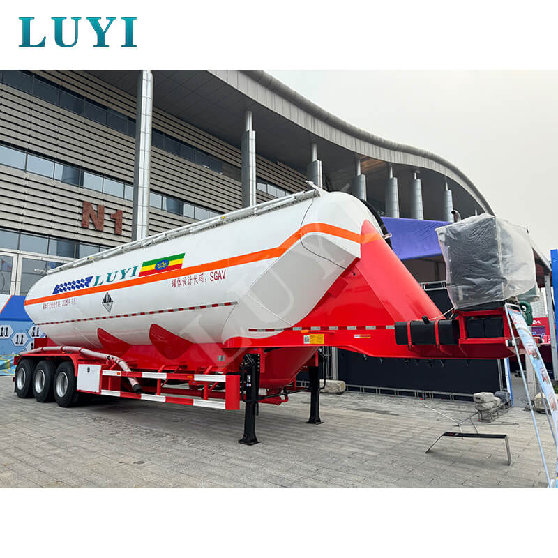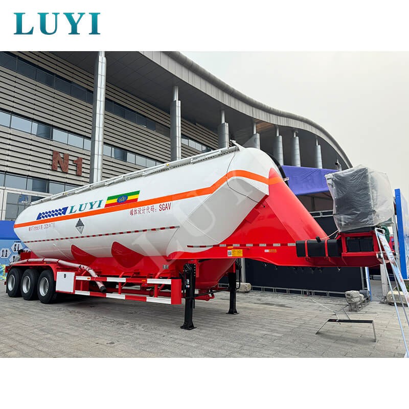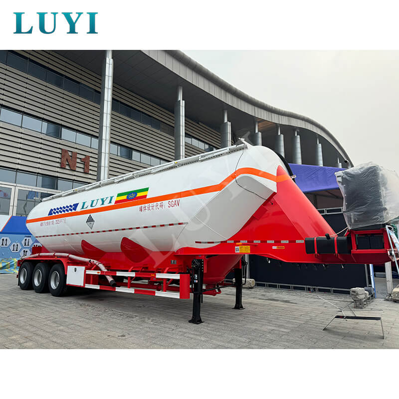 A Kínából származó "Luyi" márkájú 3 tengelyes függőleges ömlesztett cementtartályos félpótkocsi egy vadonatúj, nagy teherbírású félpótkocsi, amelyet kifejezetten porszerű és szemcsés anyagok, például ömlesztett cement szállítására terveztek. 35-40 köbméteres tartálykapacitásával és erős, 50 tonnás teherbíró képességével egyszerre nagy mennyiségű anyagot tud megrakni, csökkenti a szállítás gyakoriságát, és jelentősen javítja a működési hatékonyságot.