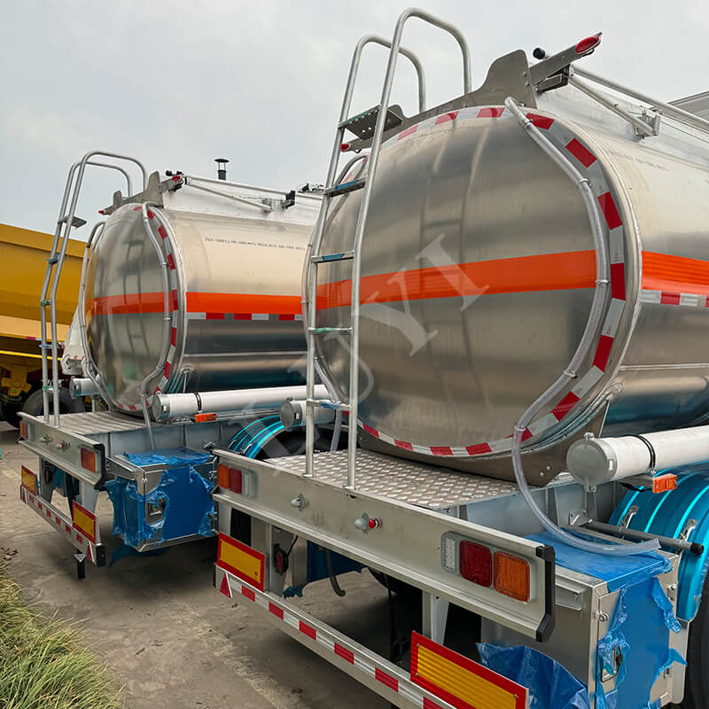 A 3 tengelyes, 45 000 literes alumínium ötvözetből készült olajtartályos félpótkocsi egy hatékony félpótkocsi berendezés, amelyet kifejezetten készolajok, például gázolaj, benzin és kerozin szállítására terveztek. Alkalmas olyan forgatókönyvekhez, mint az olajfinomítói kiszállítás és a benzinkút elosztása. A tartálytest kiváló minőségű alumíniumötvözet anyagból készült, amely könnyebb, mint a hagyományos szénacél. Ez csökkentheti a teljes jármű önsúlyát és növelheti a tényleges terhelést. Ugyanakkor kiváló olajkorrózióállósággal rendelkezik, megakadályozva, hogy az olajtermékek és a tartálytest közötti reakció befolyásolja a minőséget. A nagy, 45 000 literes kapacitás csökkentheti a szállítási utak számát és jelentősen javíthatja a logisztikai hatékonyságot.