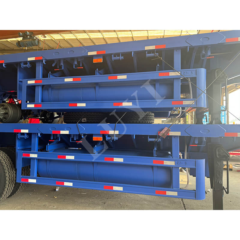 A LUYI 3 tengelyes 4 láb 50 tonnás platós félpótkocsi nagy teherbírású igásló ipari logisztikai és infrastrukturális projektekhez. 3 tengelyes kialakítása tudományosan osztja el az 50 tonnás terhelést, csökkenti az útnyomást, megfelel az országúti előírásoknak, és biztosítja a menetstabilitást. A körülbelül 1,22 méteres kulcsméret (védőkorlát/szabadmagasság) egyensúlyban tartja a be- és kirakodás kényelmét és a rakomány védelmét, alkalmas targoncákhoz és darukhoz.