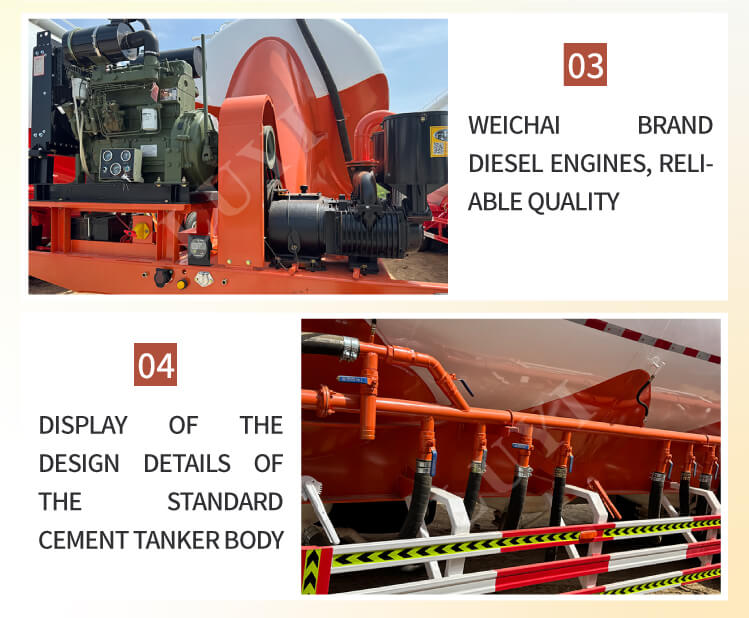 A kiváló minőségű acélból készült pótkocsi 16# csatornás acélt alkalmaz az oldalsó gerendákhoz, így stabil és tartós szerkezetet biztosít. Maximális effektív hasznos teherbírása meghaladja a 30.000 kg-ot, rakodóképessége pedig 30 tonnától 60 tonnáig terjed, könnyedén kielégítve a különböző szállítási mennyiségek igényeit. 3 tengelyes szerkezettel, 12R22,5-ös gumikkal és 9,00-22,5-ös felnikkel szerelve, mechanikus légrugós felfüggesztéssel párosítva stabil vezetést biztosít és alkalmazkodik a különféle útviszonyokhoz. A standard 28 tonnás futómű szilárd tartást garantál parkolás közben. Sőt, 6 év garanciával rendelkezik, amely átfogóan csökkenti a használati aggályokat, és megbízható és hosszú távú berendezéstámogatást biztosít az ömlesztett cementpor szállításához.