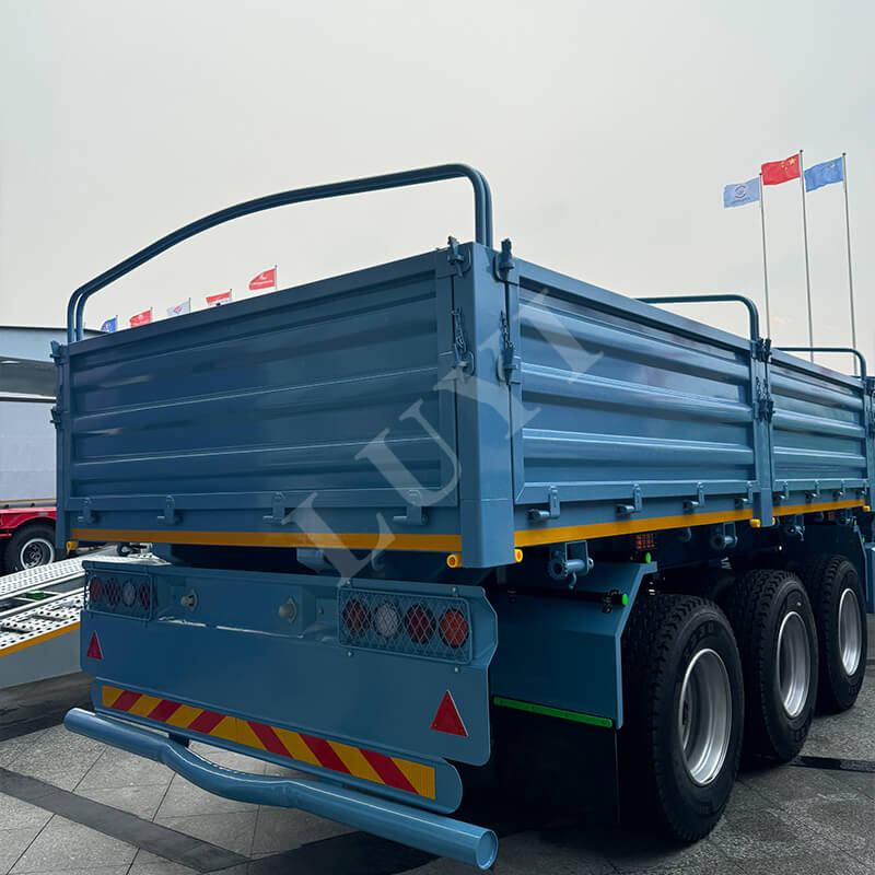 Ezenkívül a jármű megerősített felfüggesztési rendszerrel és érzékeny fékrendszerrel van felszerelve, amely hatékonyan tompítja az ütéseket, csökkenti a rakomány sérülését, és stabil vezetést biztosít bonyolult útviszonyok között is. Legyen szó rövid távú szállításról infrastrukturális projektekhez vagy távolsági elosztásról a bányászatban, ez a félpótkocsi megbízható teljesítménnyel elégíti ki a nagy intenzitású szállítási igényeket, és magasabb működési értéket teremt a felhasználók számára.