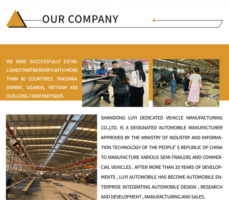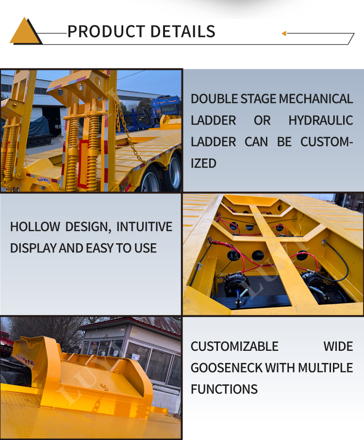 A kínai Shandongból származó LUYI 3 tengelyes, 60 tonnás alacsony, lapos félpótkocsija megbízható választás nehéz teherszállításhoz. Kiváló minőségű szénacélból készült, 13000×3000×1650 mm-es szabványos mérettel és 80 tonnás maximális teherbírással büszkélkedhet, így könnyen kezelhető a nagy teherbírású szállítási igények.