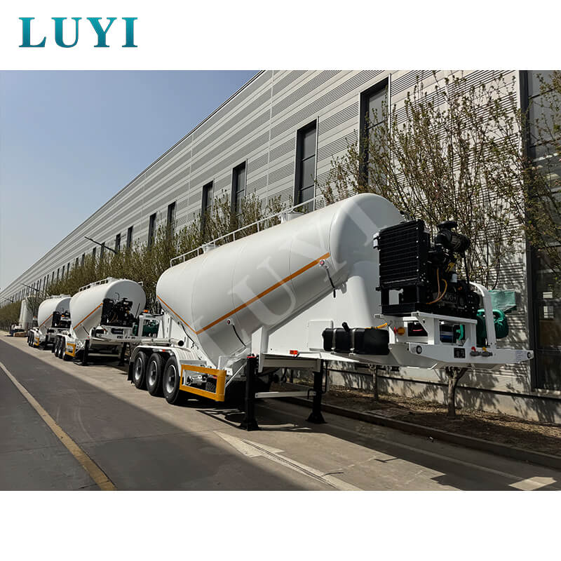 A LUYI 3 tengelyes 30-60 köbméteres cementszállító tartálykocsi, más néven portartálykocsi, a kínai Shandong tartományból származik. Ez egy nagy hatékonyságú félpótkocsi, amelyet kifejezetten ömlesztett cementpor szállítására terveztek, pontosan kielégítve a rakományszállítási forgatókönyvek igényeit.
