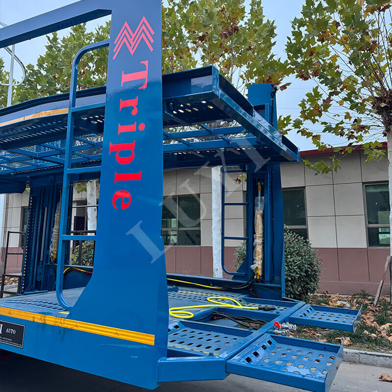 A Luyi 3 tengelyes autószállító félpótkocsi, 17 méteres konténerszállító pótkocsi, mint új, Kínában gyártott nagy teherbírású szállítóeszköz, kifejezetten autók és konténerek szállítására készült. 25 tonnás teherbírásával megfelel az általános áruszállítási igényeknek, és a praktikum a megbízhatósággal ötvözi.