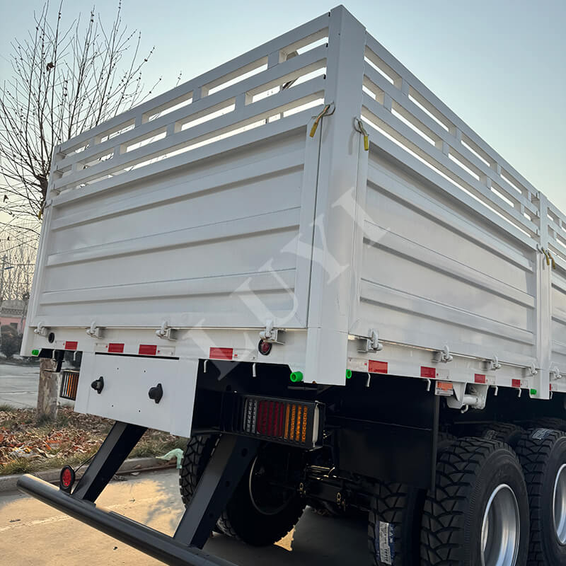 A jármű főként acélból készült, vadonatúj állapotban, megbízható minőségben. A 3 tengelyes kialakítással, laprugós felfüggesztés rendszerrel, valamint opcionálisan mechanikus vagy légrugós felfüggesztéssel kombinálva biztosítja menet közben a stabilitást és a teherbírást, 30 tonnás teherbírásig. Az 12500x2500x2100 mm-es specifikáció elegendő rakodóteret biztosít, amely nem csak ömlesztett áruk szállítására képes, hanem konténerek szállítására is alkalmas, sokféle alkalmazási forgatókönyv mellett. Egyedülálló önkirakodó funkciója nagymértékben javítja az áruk be- és kirakodásának hatékonyságát, csökkenti a munkaerőköltségeket és a be-/kirakodási időt. Akár az építőanyagok szállításáról, akár az ipari késztermékek forgalmazásáról van szó, a Luyi 3 tengelyes oldalfalas félpótkocsi áruszállításra támaszkodhat kiváló teljesítményére és megbízható minőségére, hogy a logisztikai szállítás megfelelő asszisztensévé váljon.