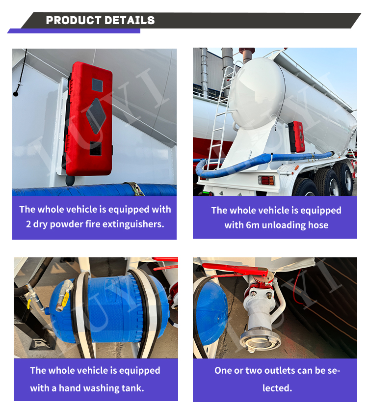 A LUYI márkájú, 3 tengelyes 30 köbméteres portartályos félpótkocsi, amely a kínai Shandongból származó kiváló minőségű gyártóbázisról származik, a száraz ömlesztett liszt szállítására szabott forgatókönyveket. Az egész jármű nagy szilárdságú szénacélból készült, a fő gerenda Q345B/ST52-3 szabványos acélból készül, amely ötvözi a tartósságot és a teherbíró stabilitást. Az 12000 mm * 2500 mm * 3980 mm tudományos mérettervezés különféle szállítási forgatókönyvekhez alkalmas.