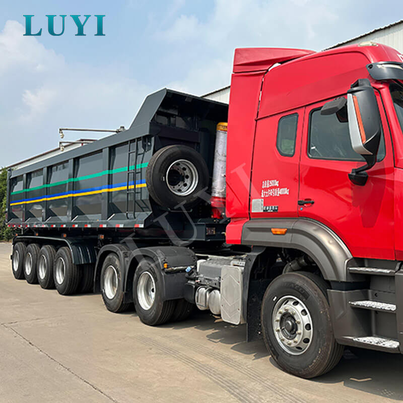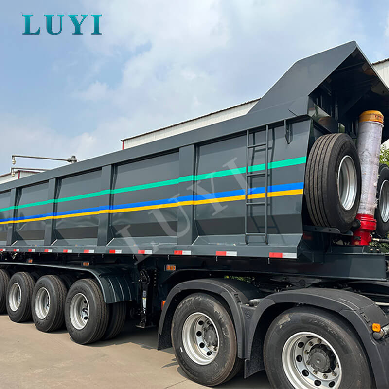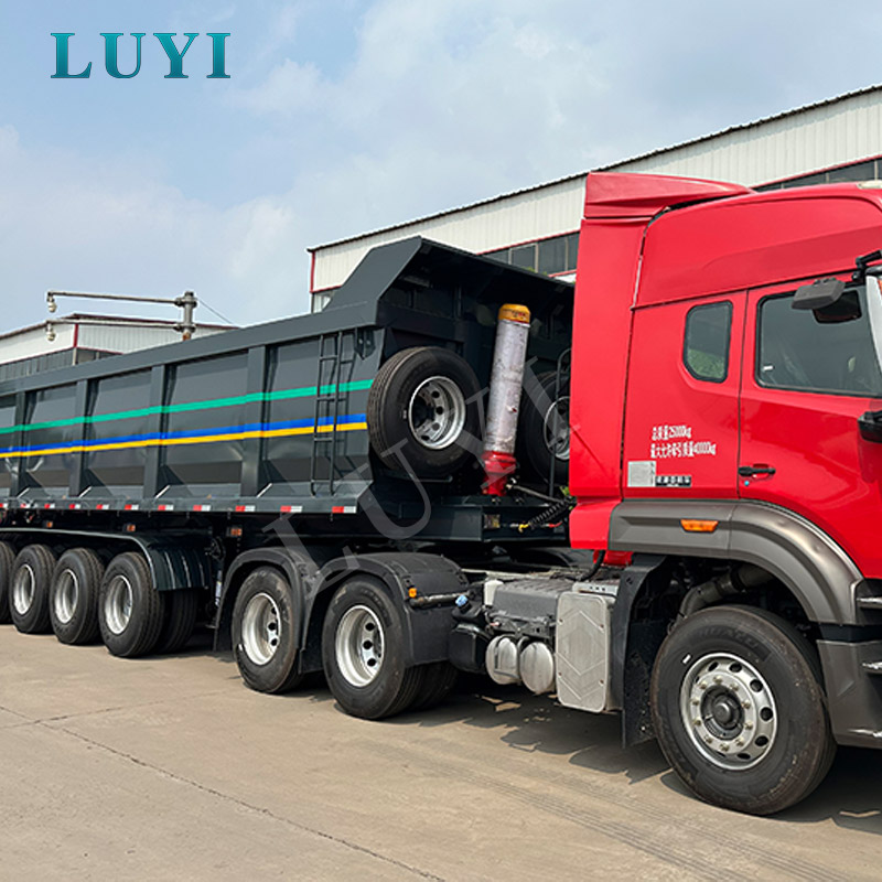 A LUYI 4 tengelyes, 100 tonnás U-alakú hidraulikus hátsó billenős félpótkocsija, amely Shandongból (Kína) származik, egy dedikált eszköz ömlesztett áruk, például homok, kavics és szén szállítására. Kiváló minőségű szénacélból készült, 12050x2550x3600mm pontos méretekkel és 100 tonnás maximális teherbírással rendelkezik, melynek erőteljes teljesítménye megfelel a nagy teherbírású szállítás igényeinek.