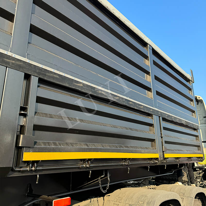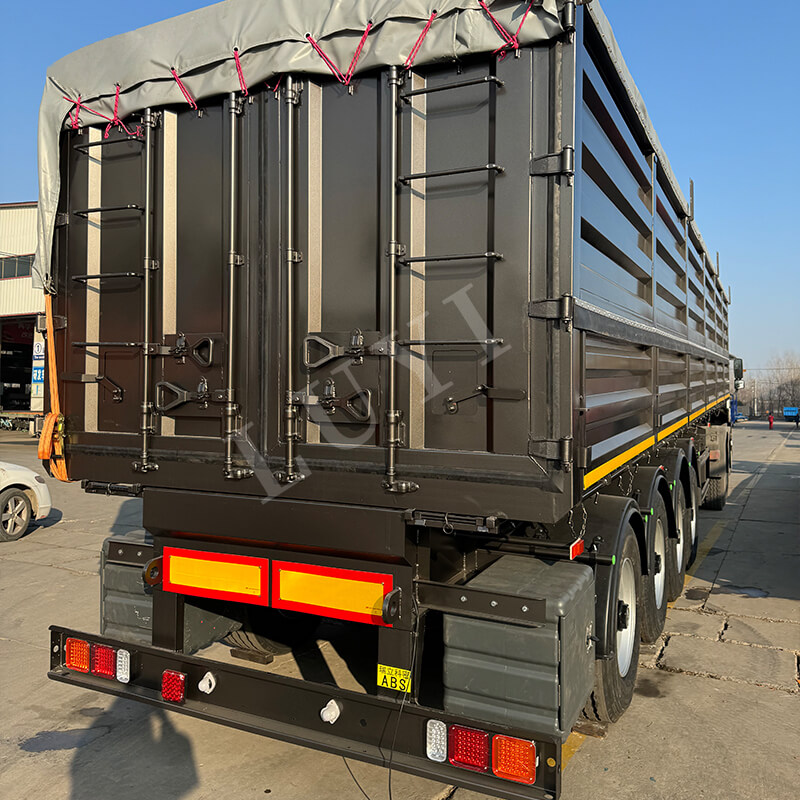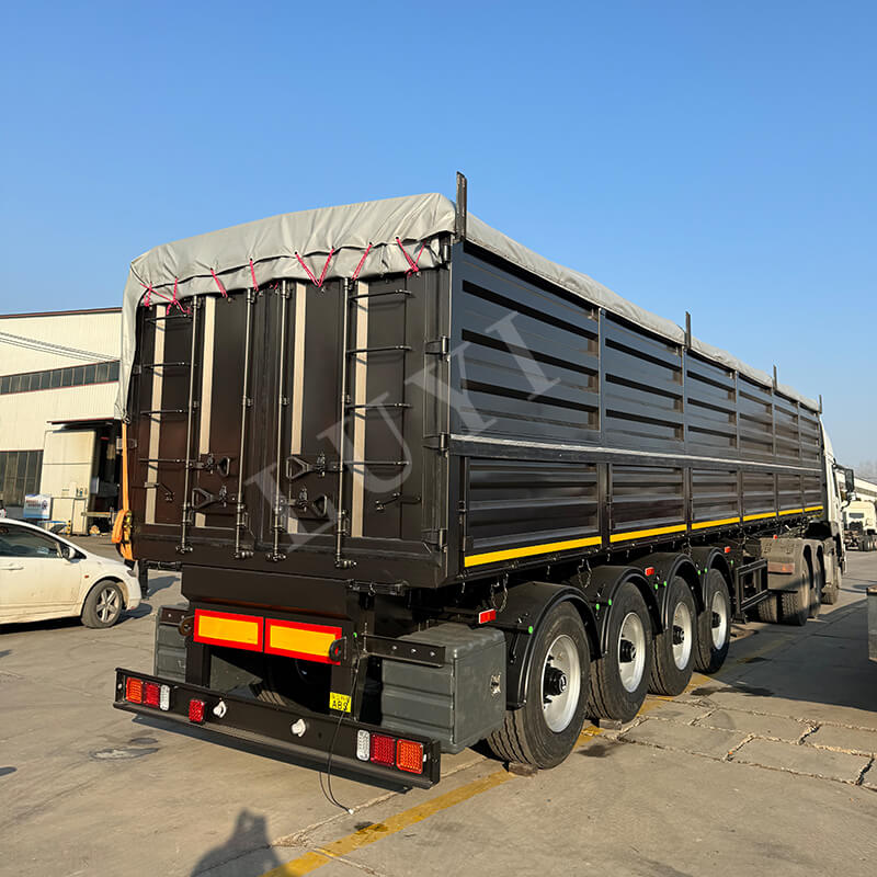 A kínai Shandong tartományból származó LUYI 4 tengelyes 40 láb 80 tonnás billenő félpótkocsi egy nagy teljesítményű billenő félpótkocsi, amelyet kifejezetten homok, kavics és szén szállítására terveztek. A pótkocsi karosszériája kiváló minőségű szénacélból készül, méretei 9500×2500×3600 mm. Erős szerkezete ellenáll a nagy terhelésnek, maximális hasznos teherbírása akár 80 tonna, amely lehetővé teszi különféle ömlesztett áruk hatékony berakodását.