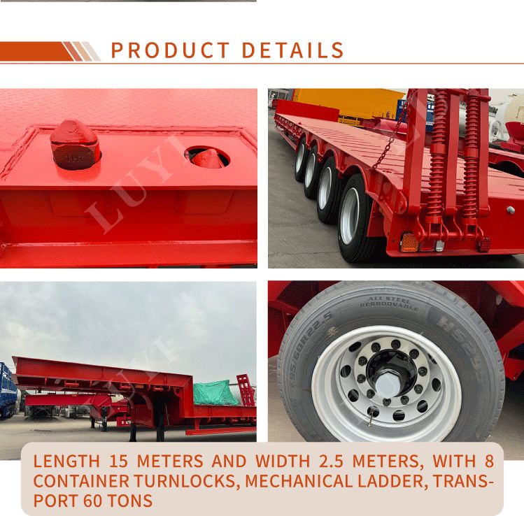 A kínai Shandong tartományban gyártott Luyi 4-tengelyes 60 tonnás hattyúnyakú félpótkocsi egy teherautó pótkocsi nehéz rakomány szállítására. A pótkocsi karosszériája kiváló minőségű acélból készült, erős és tartós szerkezettel. Maximális effektív hasznos teherbírása nem csak a 30.000 kg-ot, hanem a 100 tonnát is eléri, így könnyen szállítja a különféle nehéz árukat és kielégíti a nagy intenzitású szállítási igényeket is.