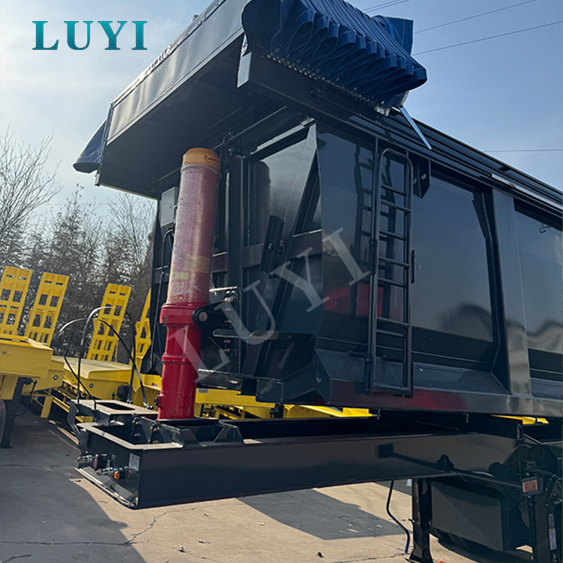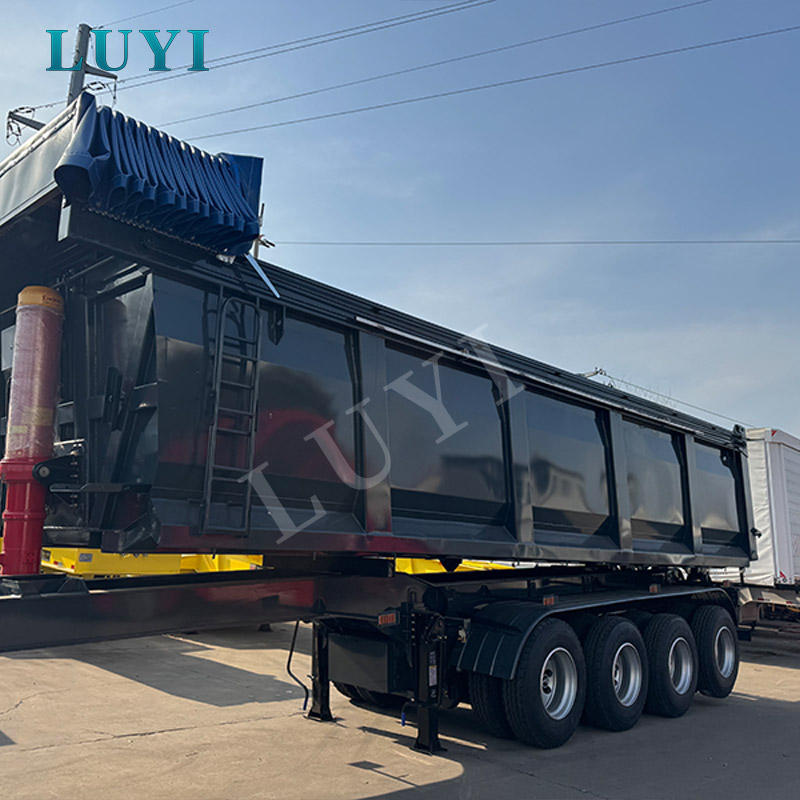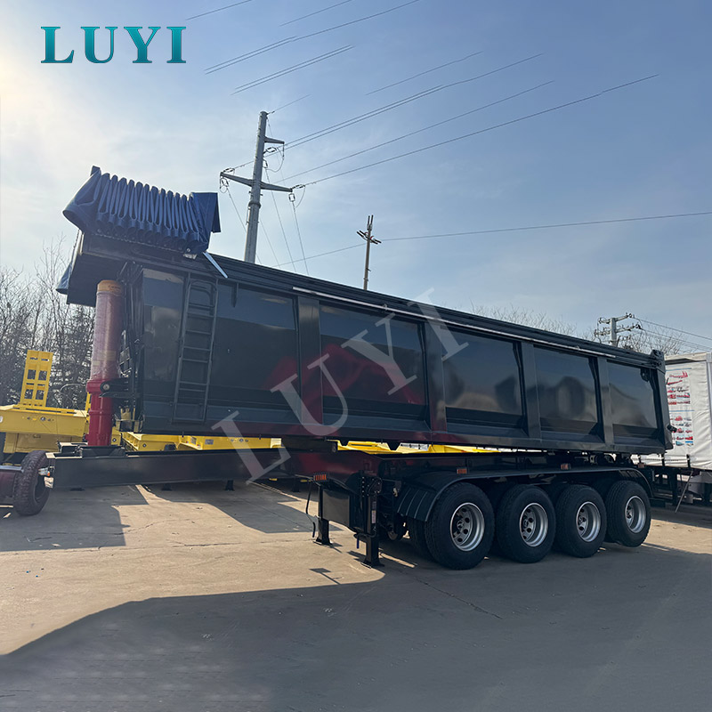 Ez a LUYI hátsó billenős félpótkocsi egy nagy teherbírású félpótkocsi, amely Shandongból (Kína) származik, és kifejezetten nehéz tehergépjárművek vontatására tervezték a bányászatban, az infrastruktúrában és az ömlesztett rakomány szállításában. A kiváló minőségű tömör acélból készült pótkocsi kiváló teherbíró képességgel rendelkezik, 70 tonnás maximális teherbírásával és mindössze 9 tonnás saját tömegével, optimális egyensúlyt biztosítva a nehéz teher és a könnyű karosszéria között. Teljes méretei 9000 mm × 2550 mm × 3700 mm, az oldalfal magassága 400 mm és 1200 mm között állítható a rugalmas rakomány elhelyezéséhez.