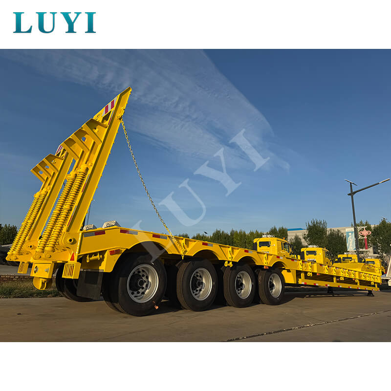 A Luyi 4-tengelyes, 80 tonnás egyedi hattyúnyakú Lowboy Trailer, amely eredetileg a kínai Shandong tartományból származik, egy vadonatúj professzionális félpótkocsi. 30 000 kg feletti maximális effektív terhelésével alkalmas teherautó utánfutós forgatókönyvekre, és hatékonyan tud nehéz rakományt szállítani.
