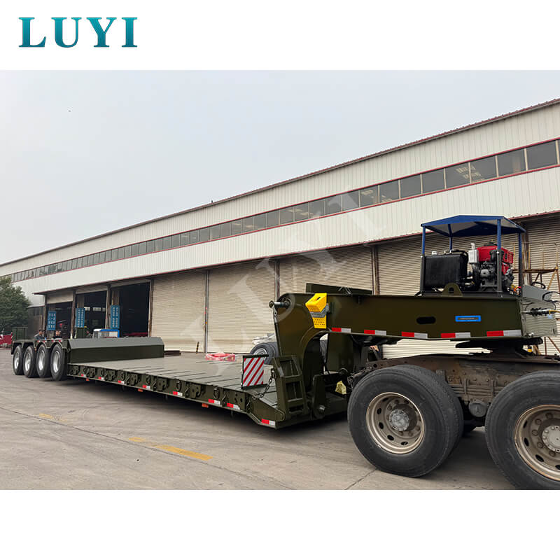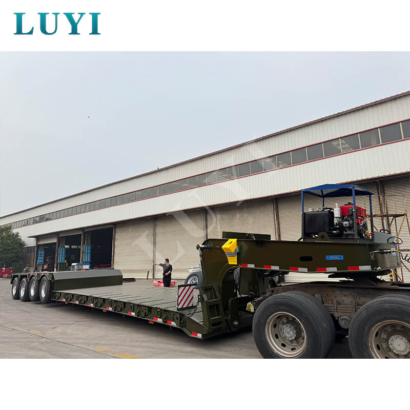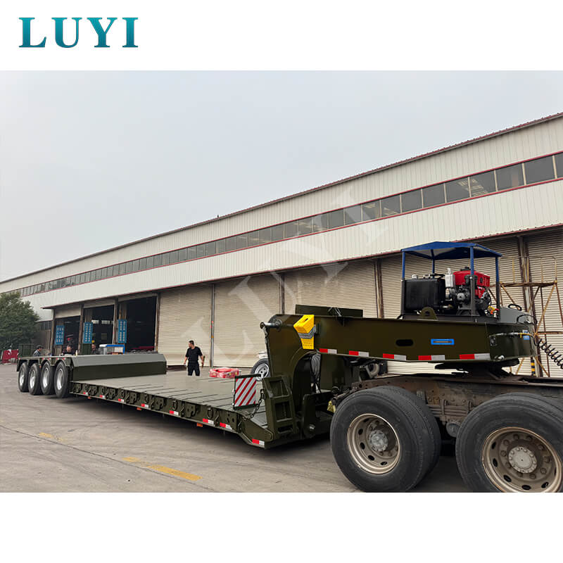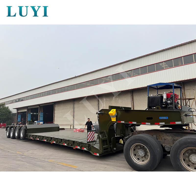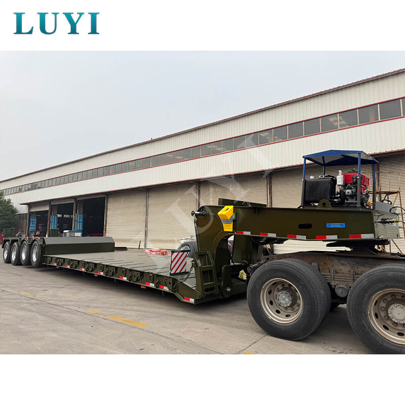 A kínai Shandong tartományból származó Luyi 4 tengelyes levehető hattyúnyakú 150 tonnás alacsony ágyas félpótkocsi egy kiváló minőségű félpótkocsi, amelyet kifejezetten nehézgépek szállítására terveztek. Kiváló minőségű acélból készült, kiváló teherbíró képességgel büszkélkedhet, 100 tonnás maximális hasznos teherbírásával, lehetővé téve a különféle típusú nehéz berendezések stabil szállítását.