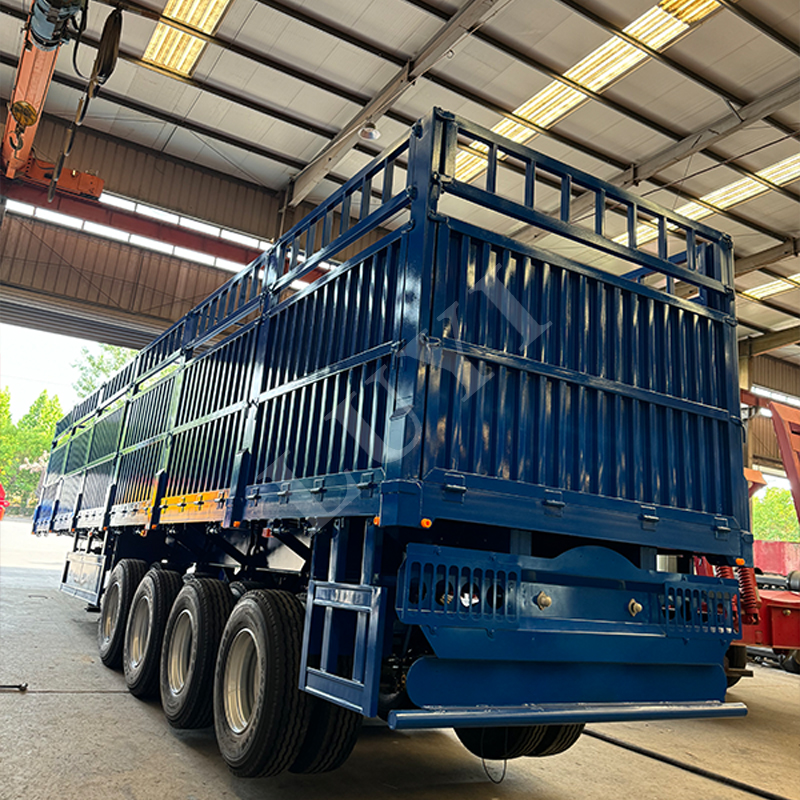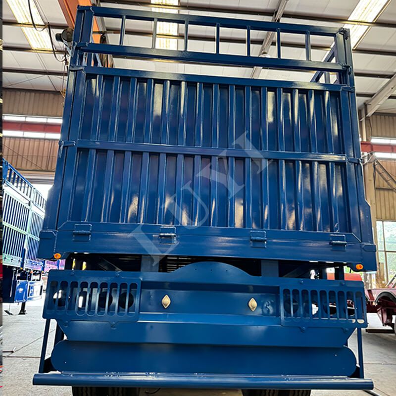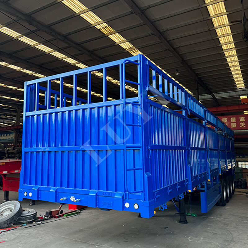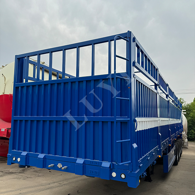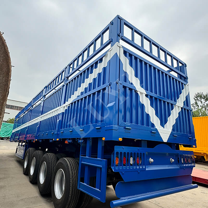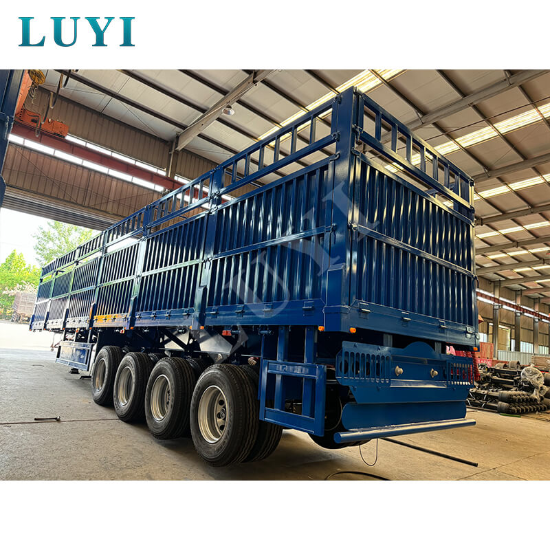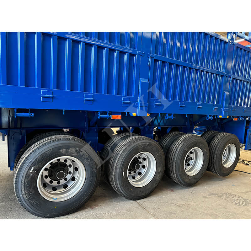 A LUYI 4 tengelyes oldalra billenő kerítésű félpótkocsi, egy új, nagy teherbírású, Kínában gyártott félpótkocsi modell, kiváló minőségű acélból készül. 30 tonnás teherbírása, alkalmas nehéz áruk, például műszaki építőanyagok és szén szállítására. A jármű tengelytávja 7000-8000 mm, nyomtávja 1820 mm, 3 tengellyel, 12 abronccsal és laprugós felfüggesztéssel van felszerelve, ami biztosítja az erős menetstabilitást és könnyedén megbirkózik bonyolult útviszonyokkal.