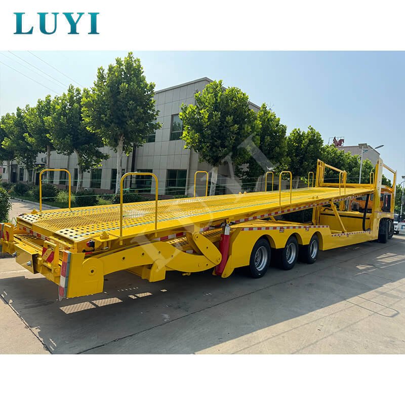 A Shandong Luyi Special Vehicle Manufacturing Co., Ltd. által gyártott LUYI 40 láb 4 tengelyes zárt, emeletes autó vontató félpótkocsi új autók szállítására, használt autók szállítására és egyéb forgatókönyvekre lett tervezve. A 40-60 tonnás teherbírással 4 tengelyes szerkezetével a teljesen zárt karosszéria védi a járműveket a külső sérülésektől. Az emeletes rakodóplatform 6-8 egységre növeli a rakodási kapacitást, míg a dönthető ágy leegyszerűsíti az alacsony alvázú modellek be- és kirakodását. Acélból készült, nagy szilárdságot, kopásállóságot és költséghatékonyságot kínál, ideális a nagyfrekvenciás, nagy teherbírású kereskedelmi szállításokhoz.