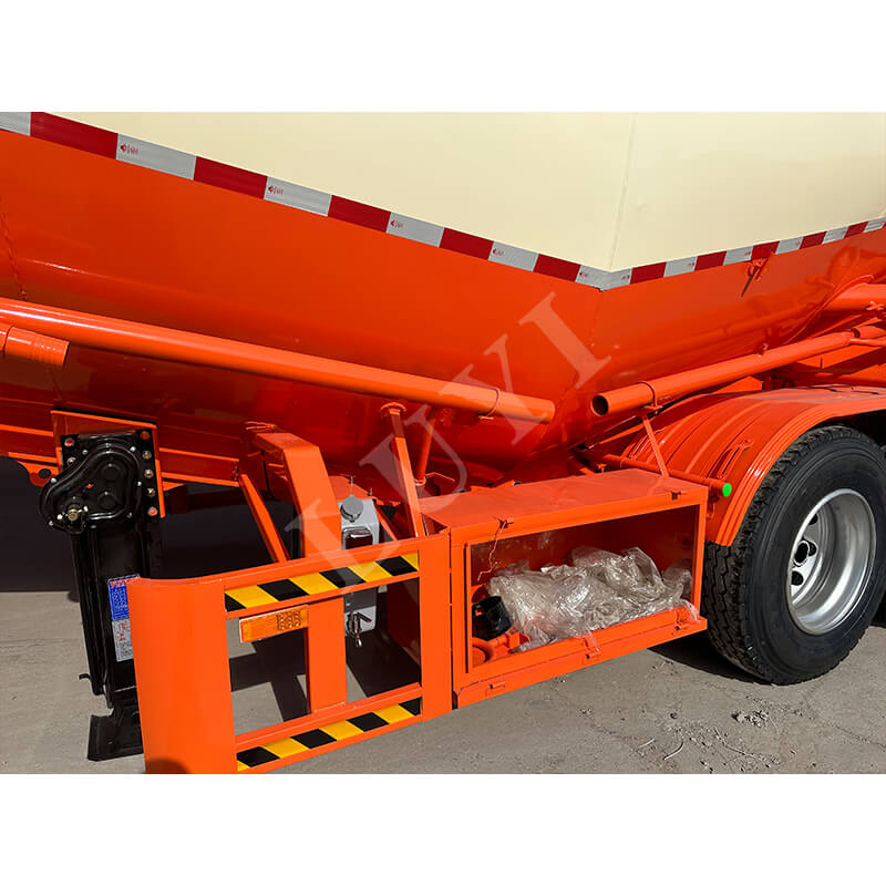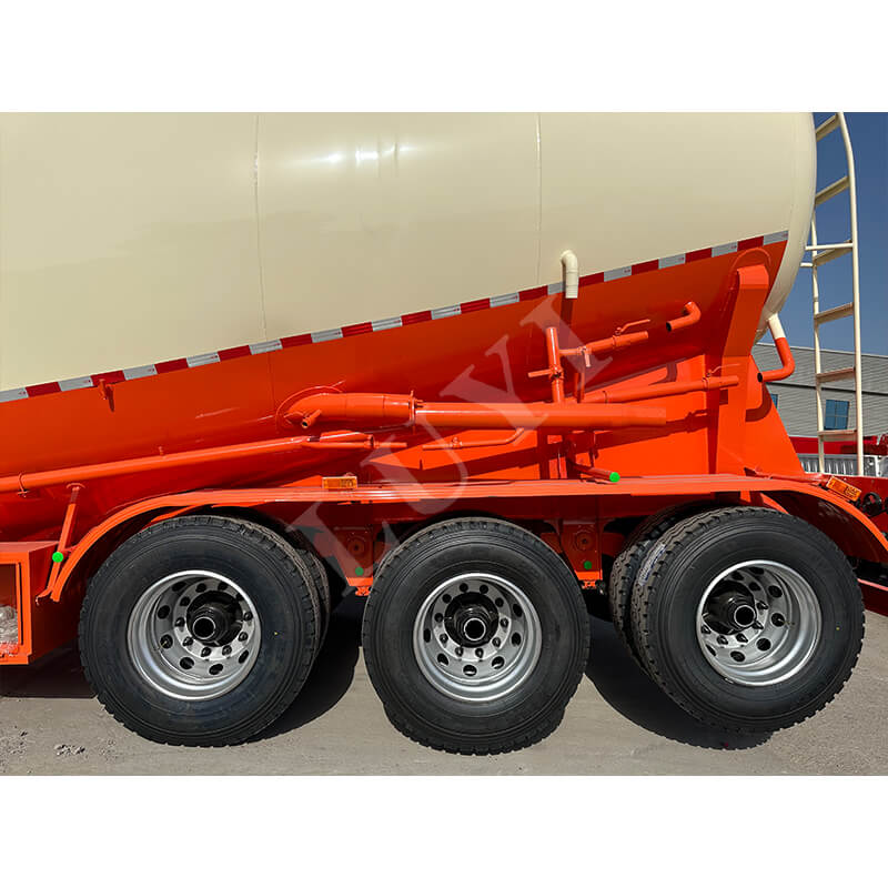 Az utánfutó méretei 10500×2550×4000 mm. Kétféle mechanikus/légrugós felfüggesztéssel van felszerelve, 3 tengelyes stabil szerkezettel és 28 tonnás, nagy teherbírású kitámasztókkal párosítva, hogy biztosítsák a stabilitást parkolás és vezetés közben. A kétsoros fékrendszer fokozza a biztonságot. A gumiabroncsok különféle specifikációit tartalmazzák, például 11.00r20 és 12r22.5, a királycsap pedig két modellben kapható: JOST 50 mm / 90 mm. Ezenkívül a szín az igényeknek megfelelően testreszabható, teljes mértékben alkalmazkodva a különböző szállítási forgatókönyvekhez és esztétikai követelményekhez, így megbízható berendezés ömlesztett cementszállításhoz.