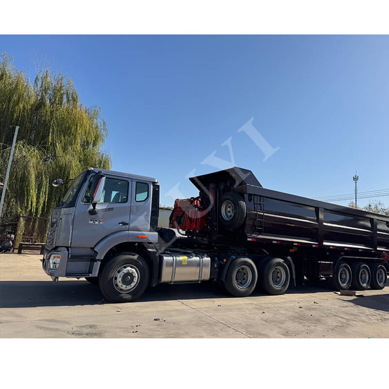Rugalmas, 2/3/4 tengelyes tengelyválasztékot kínál, amelyek mindegyike jól ismert Fuhua és BPW márkákkal van felszerelve. A 12R22.5/12.00R20/11R22.5 méretű többspec abroncsokkal párosítva két felfüggesztési lehetőséget (mechanikus felfüggesztést és légrugózást) biztosít a stabil vezetés érdekében. A szabványos 28 tonnás támasztólábakkal és JOST márkájú királycsapokkal (opcionális 2 hüvelykes/3,5 hüvelykes) felszerelve erős alkalmazkodóképességgel rendelkezik. A karosszéria színe az ügyfél igényei szerint testreszabható. U-alakú hidraulikus hátsó billenős kialakításával és szilárd konfigurációjával kényelmes és megbízható megoldást kínál az ömlesztett rakományok szállítására.