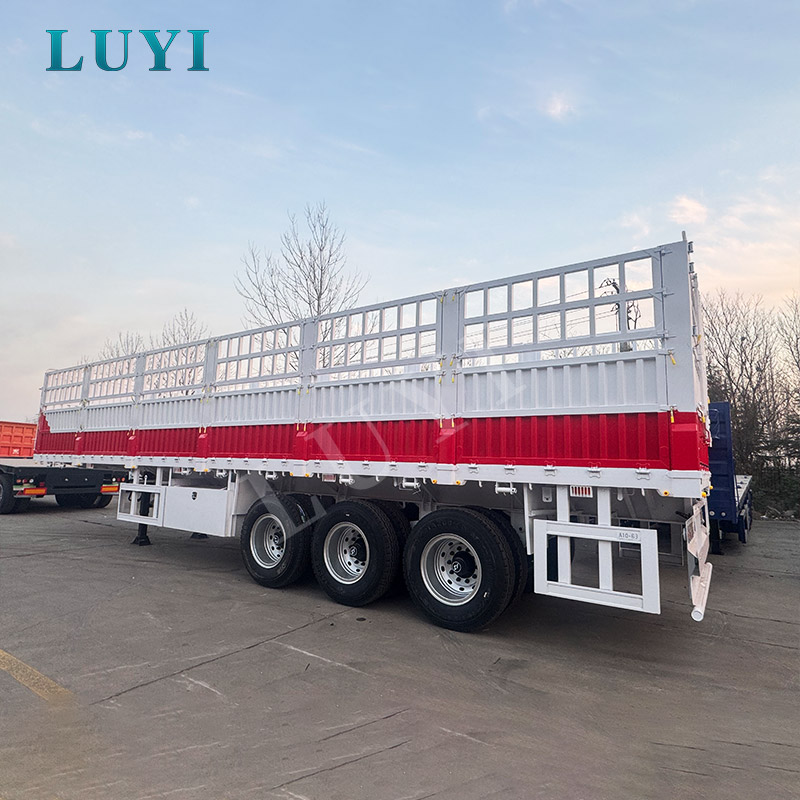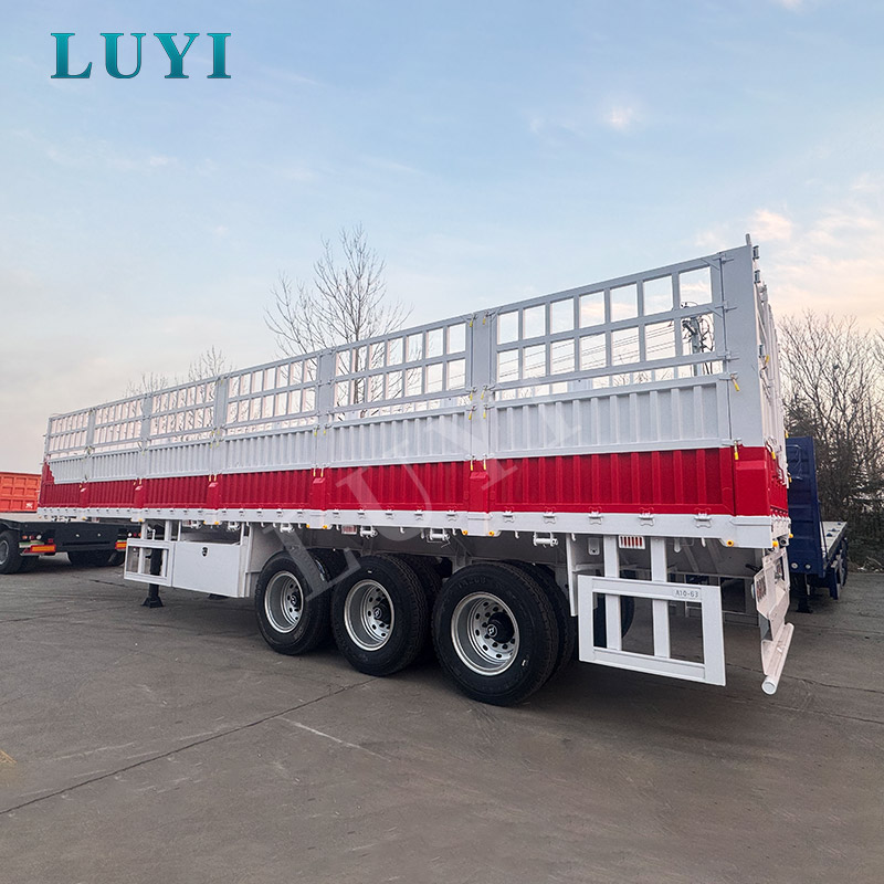 A LUYI 3 tengelyes oldalfalas félpótkocsi egy nagy teherbírású szállító igásló, amelyet ömlesztett rakományokra építettek, 50T, 60T és 80T teherbírásban. 1550025504000 mm átmérőjű, robusztus acél karosszériája és két felfüggesztési opciója van: mechanikus felfüggesztés a költséghatékony tartósságért és légrugózás a zökkenőmentes utakon való simább utazásért. 12 db 12r22.5 abronccsal és Feichi, BPW vagy Fuwa csúcstengelyekkel szerelve stabil teljesítményt biztosít még maximális terhelés mellett is.