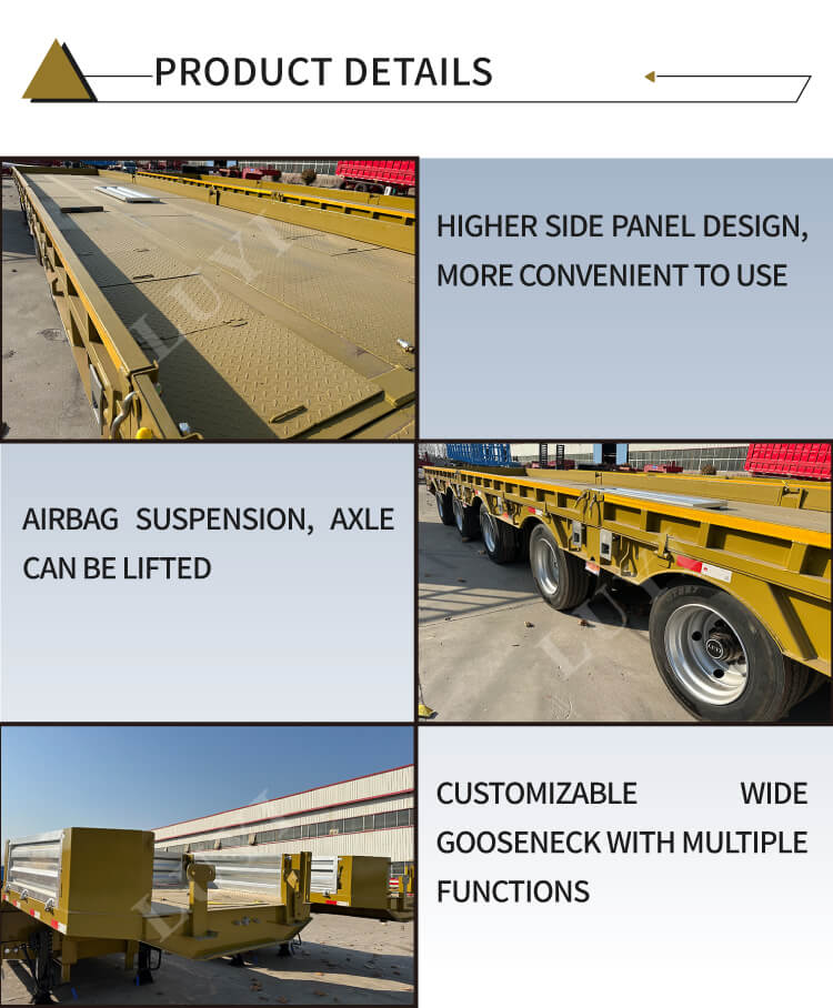 A LUYI 5 tengelyes, 16 m-es 80 tonnás légrugós, alacsony ágyas félpótkocsi, egy prémium félpótkocsi a kínai Shandongból, nagy teherbírású berendezések szállítására lett kifejlesztve. Nagy szilárdságú acélból készült, 16000×3500×1800 mm-es szabványos mérettel és 60-200 tonnás teherbírással, így könnyen kezelhető a nehéz rakomány, mint a nagy gépek.
