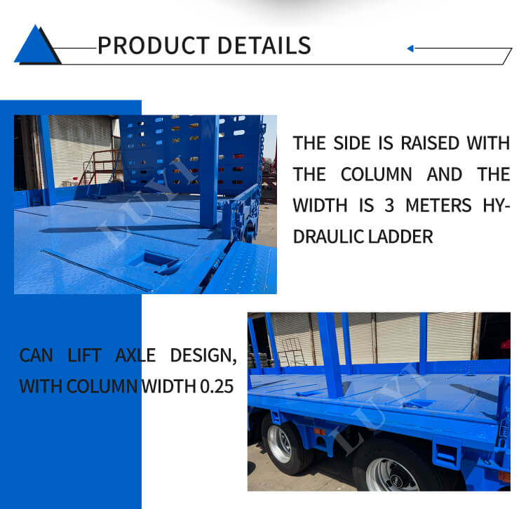 A kínai Shandongból származó LUYI Container Platbbed Semi-Trailer egy kiváló minőségű félpótkocsi, amelyet kifejezetten nehéz rakomány szállítására terveztek.Nagy szilárdságú acélból készült......