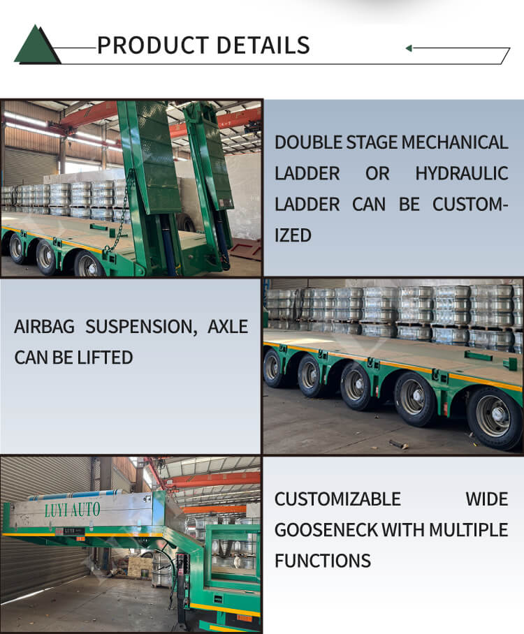A kínai Shandong tartományból származó Luyi 6 tengelyes 100 tonnás alacsony ágyas félpótkocsi egy vadonatúj teherautó pótkocsi, amelyet kifejezetten nehézgépszállításra terveztek, amely hatékonyan képes kielégíteni a rakomány rakodási igényeit.