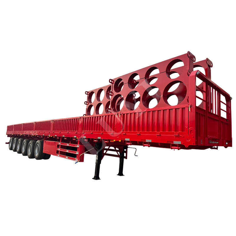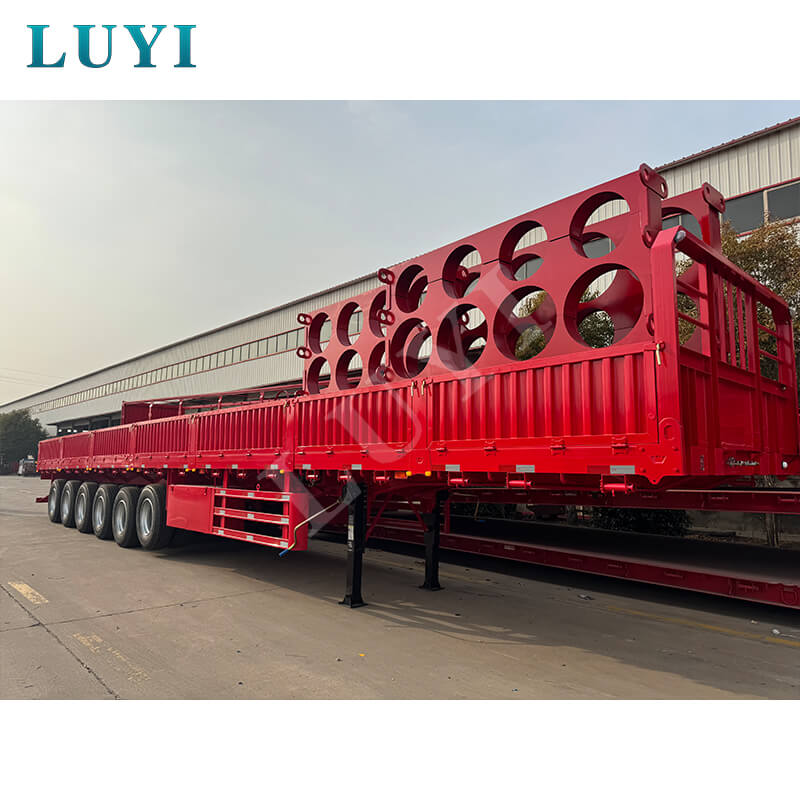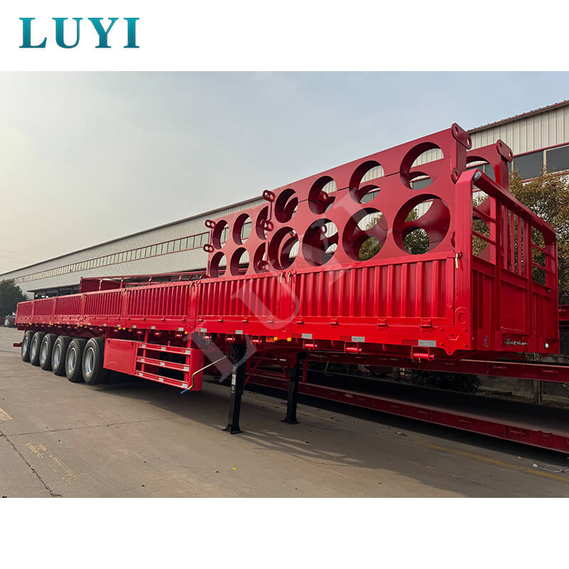 A LUYI 6 tengelyes, 15,5 m-es 80-100 tonnás 40 láb oldalfalú félpótkocsi, más néven tét típusú/platós félpótkocsi, a kínai Shandongból származik. Ez egy kiváló minőségű félpótkocsi, amelyet konténerek és ömlesztett rakomány szállítására terveztek. Teljesen acélból készült, 15500x2500x1600mm méretű, 60-100 tonnás maximális hasznos teherbírással, erős teherbíró képességgel büszkélkedhet, így könnyedén kielégítheti a nehéz rakományszállítási igényeket.