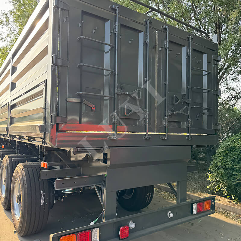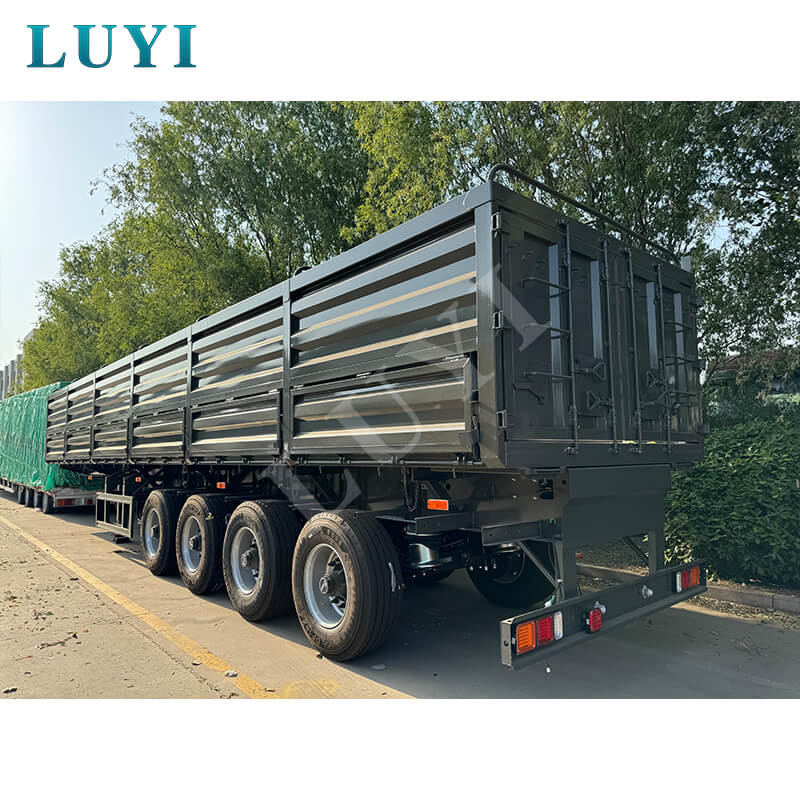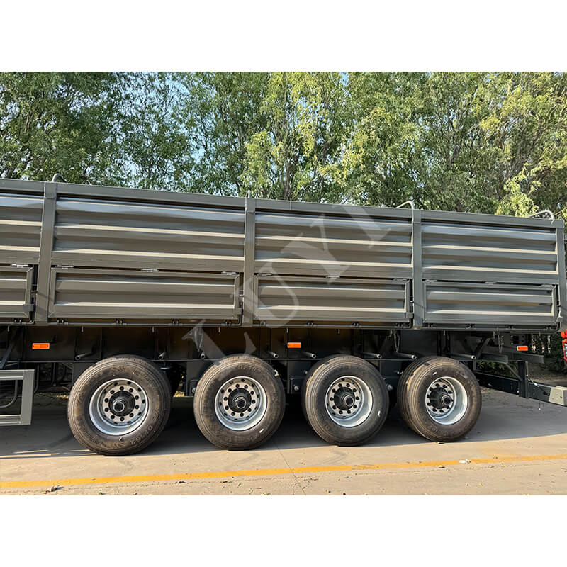 A LUYI 60 tonnás osztályú, 4 tengelyes oldalsó billenős félpótkocsi nagy teherbírású ömlesztett rakomány szállítására lett kialakítva olyan forgatókönyvekben, mint a bányák és az infrastrukturális projektek. Oldalra billenő hidraulikus ürítőszerkezettel rendelkezik, amely lehetővé teszi a gyors kirakodást szűk helyeken és a rekesz percek alatti teljes kiürítését, nagymértékben javítva a rakományforgalom hatékonyságát. A mag teherhordó alkatrészei nagy szilárdságú, tartós acélból készülnek, 4 tengelyes kialakítással és légrugós légzsákokkal párosítva. Ez nemcsak a 60 tonnás nehéz rakományok nyomását osztja el, és megfelel a szabályozási követelményeknek, hanem a terhelésnek megfelelően beállítja az ütéselnyelési keménységet is, csökkentve a rakomány rázkódását és a közúti ütközést. Az egész jármű egyensúlyban van a hatékony kirakodás, a nagy teherbírású tartósság és a menetstabilitás között, így megbízható választás a nagy teherbírású ömlesztett áruszállításhoz.