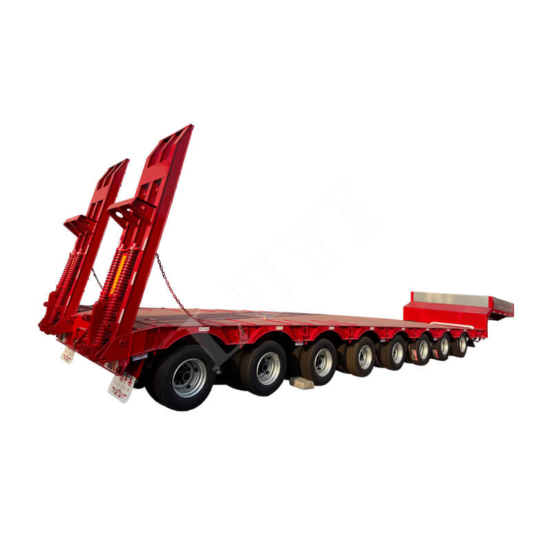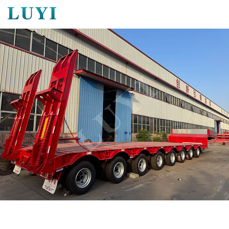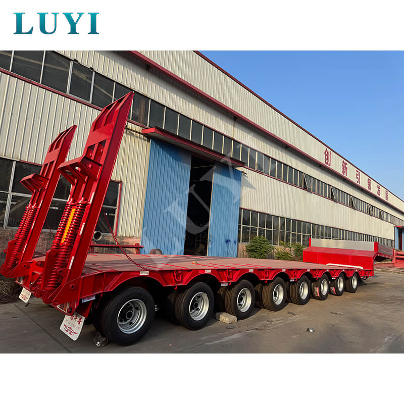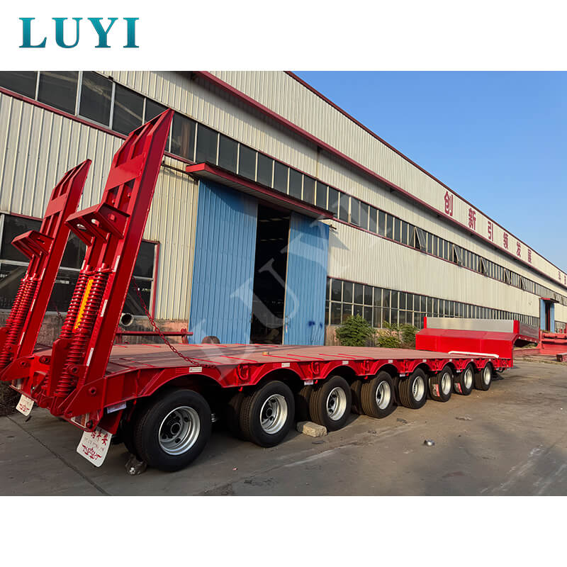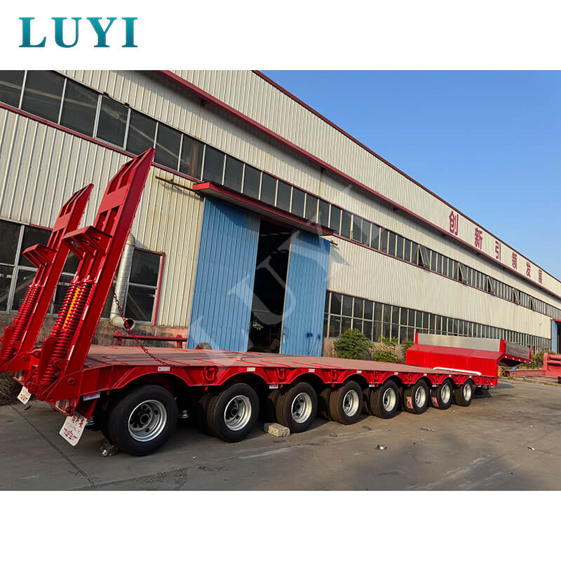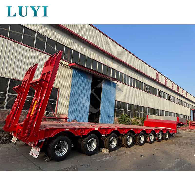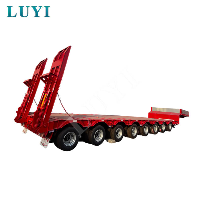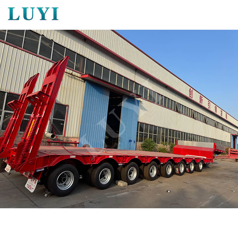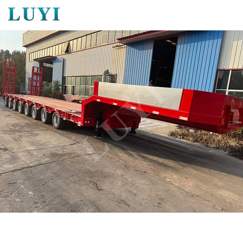 A kínai Shandong tartományból származó Luyi 8 tengelyes 150 tonnás 40 láb rakodó hidraulikus alacsony ágyas félpótkocsi egy kiváló minőségű félpótkocsi, amelyet kifejezetten nehéz rakomány szállít......