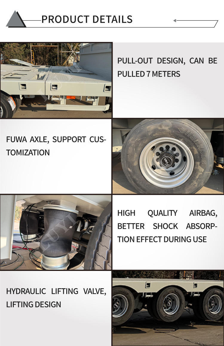A kínai Shandongból származó LUYI 8 tengelyes, 17 méteres nagy teherbírású, alacsony ágyas félpótkocsi egy nagy teljesítményű berendezés, amelyet nehéz rakomány szállítására szabtak. 80 tonnás teherbírásával és 30 000 kg-ot meghaladó maximális hasznos teherbírásával könnyedén kezeli a nagy mérnöki gépeket és a nehéz alkatrészeket. Az 16900*3000*1800 mm-es méretekkel az alacsony ágyas kialakítás alkalmazkodik a túl magas rakományhoz, hatékonyan elkerülve a szállítási magasság korlátozását.