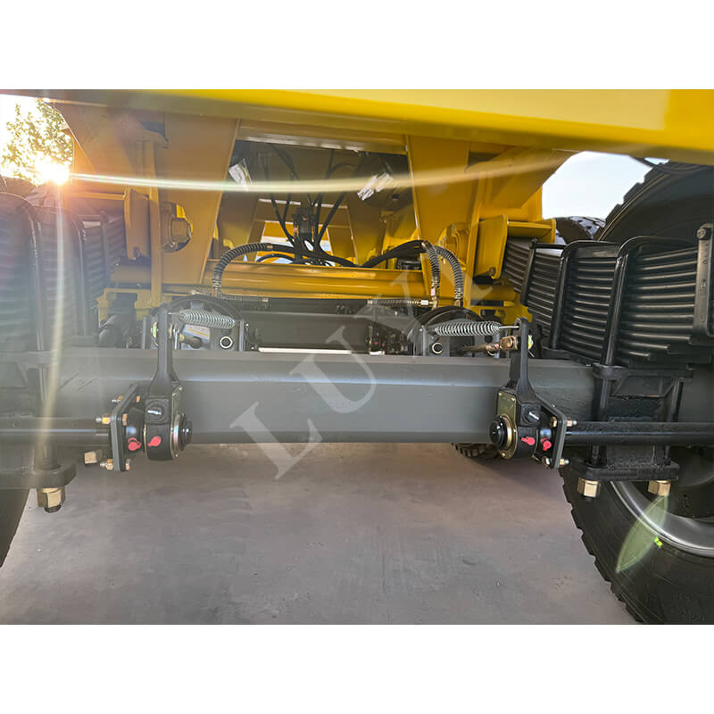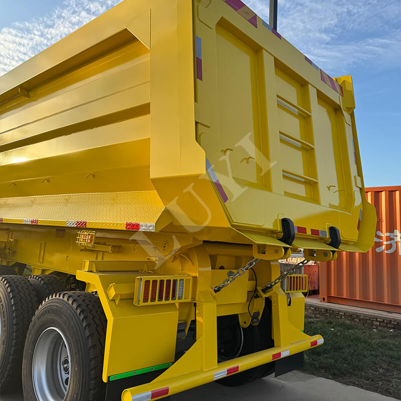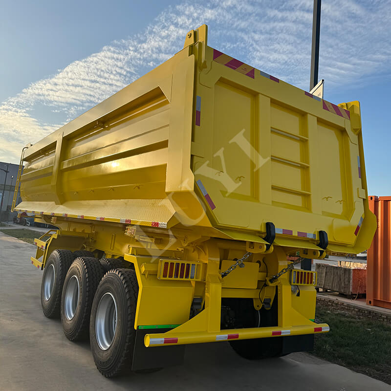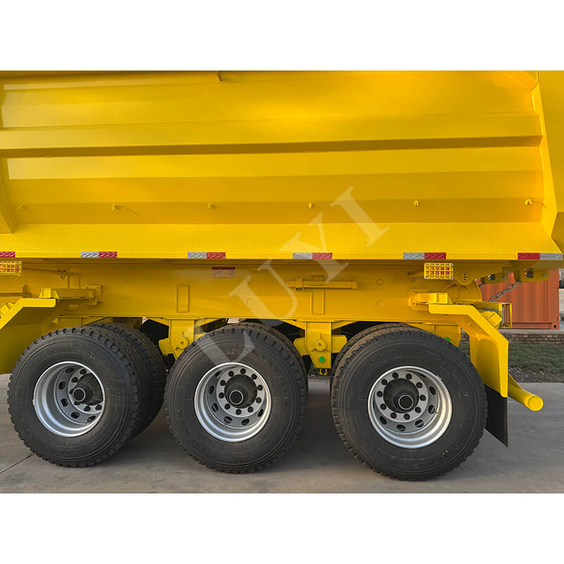 A jármű kiváló rugalmassággal rendelkezik. A tengelyek 2/3/4 tengellyel konfigurálhatók, Fuwa vagy BPW márkájú tengelyekkel. A felfüggesztés választhatóan mechanikus vagy légrugós lehet, alkalmazkodva a különböző útviszonyokhoz; 12R22.5/12.00R20/11R22.5规格 abroncsokkal van felszerelve a stabil vezetés érdekében. A parkolás biztonsága érdekében szabványos 28 tonnás kitámasztókkal van felszerelve. A királycsap 2 hüvelykes (50 mm) vagy 3,5 hüvelykes (90 mm) JOST opciókat kínál. A szín testreszabható az ügyfél igényei szerint. A hidraulikus dömper kialakítása hatékony és kényelmes, kiváló minőségű megoldást kínál az anyagszállításhoz.