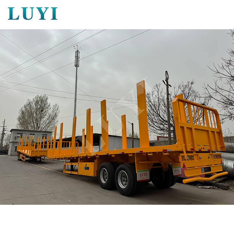 A LUYI 2 tengelyes, 40 tonnás oszlopos platós pótkocsiját széles körű testreszabási lehetőségekkel faszállításra szabták. Állítsa be a tálalódeszka magasságát (rendelhető 30-80 cm), hogy illeszkedjen a rönkökhöz, fűrészárukhoz vagy más fatermékekhez, és válasszon az acéllemez vagy csúszásgátló bevonatú fedélzetek közül a jobb tapadás érdekében.