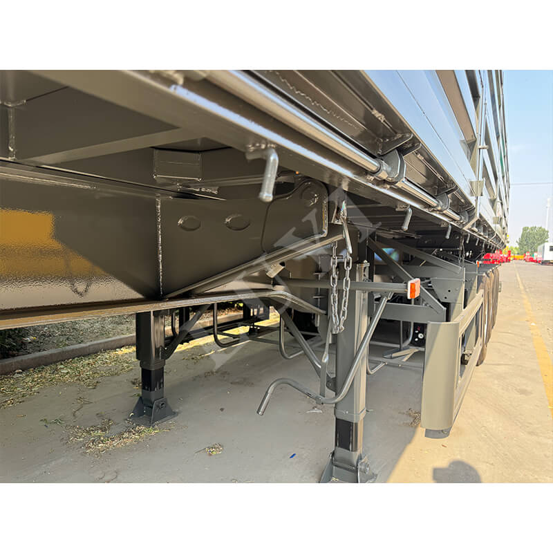 A LUYI 60 tonnás osztályú, 4 tengelyes oldalsó billenős félpótkocsi nagy teherbírású ömlesztett rakomány szállítására lett kialakítva olyan forgatókönyvekben, mint a bányák és az infrastrukturális projektek. Oldalra billenő hidraulikus ürítőszerkezettel rendelkezik, amely lehetővé teszi a gyors kirakodást szűk helyeken és a rekesz percek alatti teljes kiürítését, nagymértékben javítva a rakományforgalom hatékonyságát. A mag teherhordó alkatrészei nagy szilárdságú, tartós acélból készülnek, 4 tengelyes kialakítással és légrugós légzsákokkal párosítva. Ez nemcsak a 60 tonnás nehéz rakományok nyomását osztja el, és megfelel a szabályozási követelményeknek, hanem a terhelésnek megfelelően beállítja az ütéselnyelési keménységet is, csökkentve a rakomány rázkódását és a közúti ütközést. Az egész jármű egyensúlyban van a hatékony kirakodás, a nagy teherbírású tartósság és a menetstabilitás között, így megbízható választás a nagy teherbírású ömlesztett áruszállításhoz.