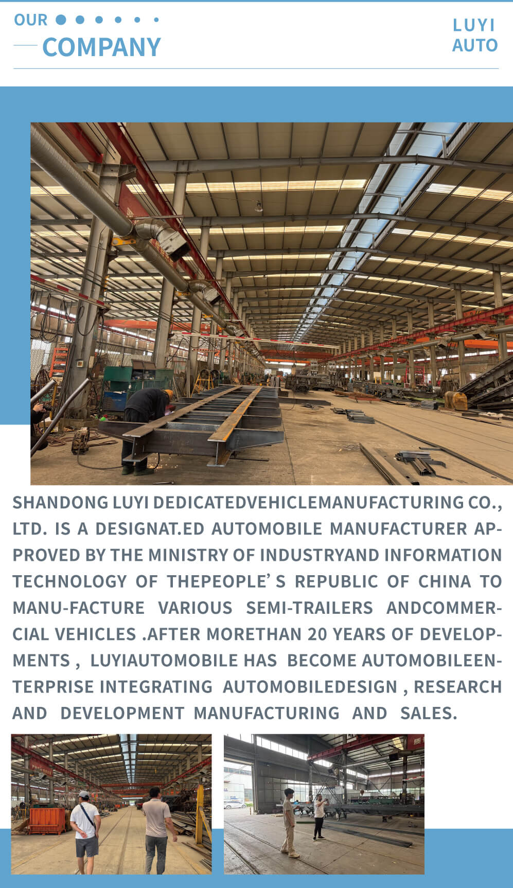 Üzemünk nem csak traktorokat gyárt, hanem billenő teherautókat, sprinkler teherautókat, teherautódarukat, mixer teherautókat, billenő pótkocsikat, tartályos pótkocsikat, alacsony ágyású pótkocsikat, poreltávolító pótkocsikat stb. Üzemünk nagy léptékű, és különböző termékeket tud testre szabni a különböző vevői igények szerint