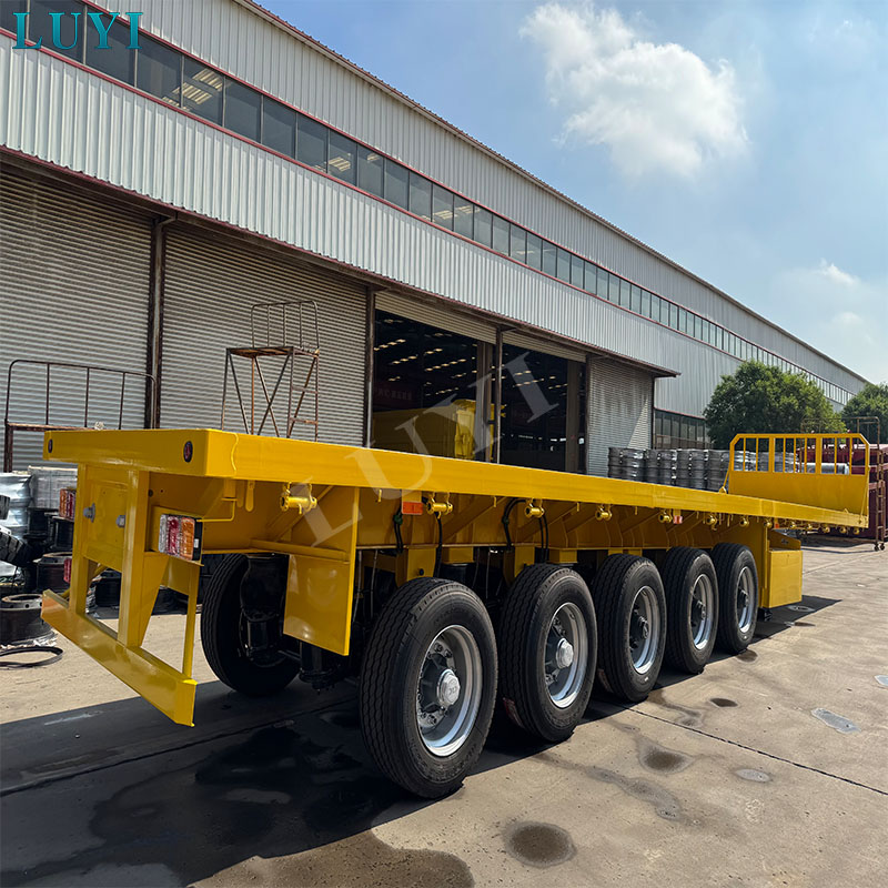 Nem sokkal ezelőtt egy méltóságteljes, de visszafogott szállítási ceremónia zajlott a LUYI shandong-i gyártóüzemében. Egyedi gyártású flotta5 tengelyes platós félpótkocsikrendezett vonalban állt, készen felszállni egy Tunéziába tartó teherhajóra Afrikában, és létfontosságú küldetésre indult, hogy támogassa az ország infrastrukturális fejlődését. Ez kulcsfontosságú mérföldkő a LUYI márka számára a tengerentúli piacokon való jelenlétének megerősítésében, és egyben a Kínában gyártott csúcskategóriás, nagy teherbírású berendezések élénk bemutatója is, amelyek a globális színtérre lépnek az afrikai infrastrukturális projektek megerősítése érdekében. A LUYI zászlóshajójaként az 5 tengelyes platós félpótkocsik világszerte számos országban és régióban széles körben dicséretet kaptak robusztus teherbíró képességüknek, megbízható minőségüknek és rugalmas alkalmazkodóképességüknek köszönhetően. 12500mm × 2500mm × 1550mm. Ez a kialakítás nemcsak Tunézia közúti szállítási normáinak felel meg, hanem maximalizálja a nehéz anyagok rakodási lehetőségét is. Az alapkonfigurációkat tekintve az 5 tengelyes platós félpótkocsik 13 tonnás, nagy szilárdságú tengelyekkel és 10 laprugóval vannak felszerelve, amelyekhez választható mechanikus vagy légrugós rendszer is párosul – így az 5 tengelyes platós félpótkocsik 300 tonnától 100 tonnáig terjedő maximális teherbírást tesznek lehetővé. Legyen szó nagy mérnöki gépekről, építőipari acélról vagy infrastrukturális kellékekről, az 5 tengelyes platós félpótkocsik stabil és megbízható szállítást biztosítanak. Ezenkívül az 5 tengelyes platós félpótkocsik kétsoros fékrendszerrel és 28 tonnás standard futóművel, valamint 12R22.5 nagy teherbírású gumiabroncsokkal vannak felszerelve, amelyek átfogóan védik a távolsági szállítás és az építkezési műveletek biztonságát – a fékezési hatékonyságtól a parkolási stabilitásig.