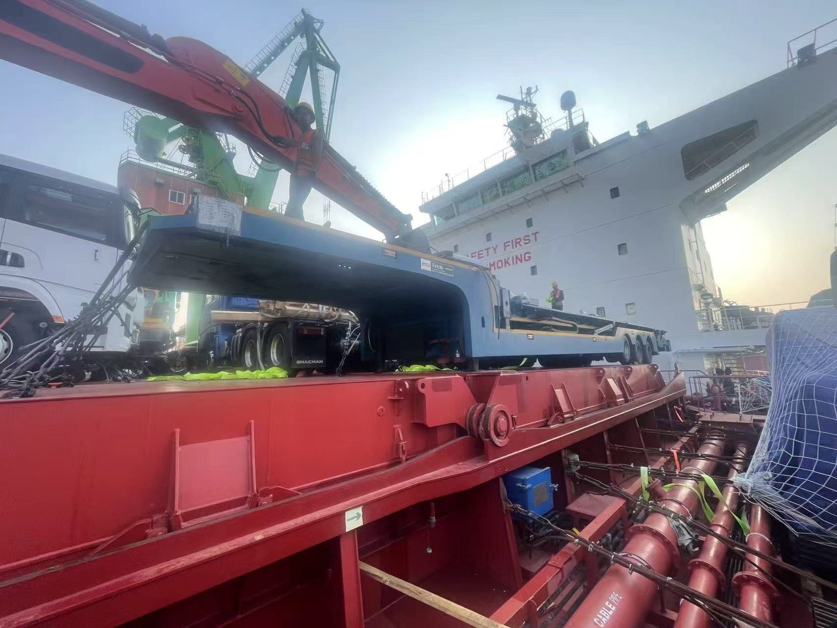 Nemrég háromplatós félpótkocsika Luyi Automobile Company alatt befejezte a berakodási műveletet egy kulcsfontosságú belföldi kikötőben, és hivatalosan tengerentúli szállítási útra indult Ghánába. Az ezúttal szállított platós félpótkocsik a Luyi Automobile által a ghánai helyi logisztikai szállítási igényekre szabott termékek. Az egész folyamat a tervezéstől a gyártásig a platós félpótkocsik praktikumára és tartósságára összpontosul, és arra törekszünk, hogy minden platós félpótkocsi alkalmazkodjon a ghánai összetett szállítási forgatókönyvekhez.