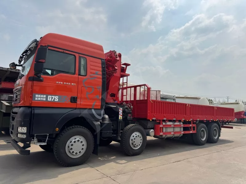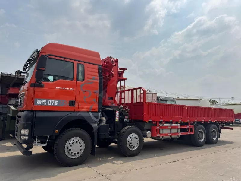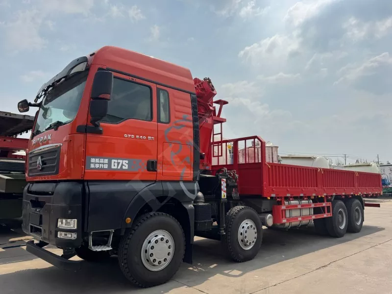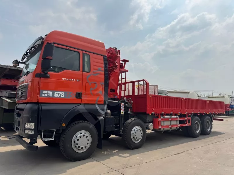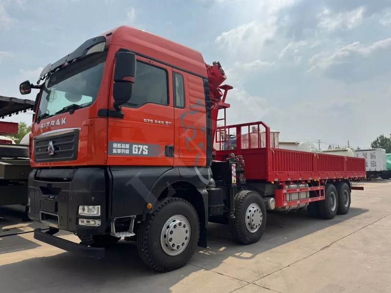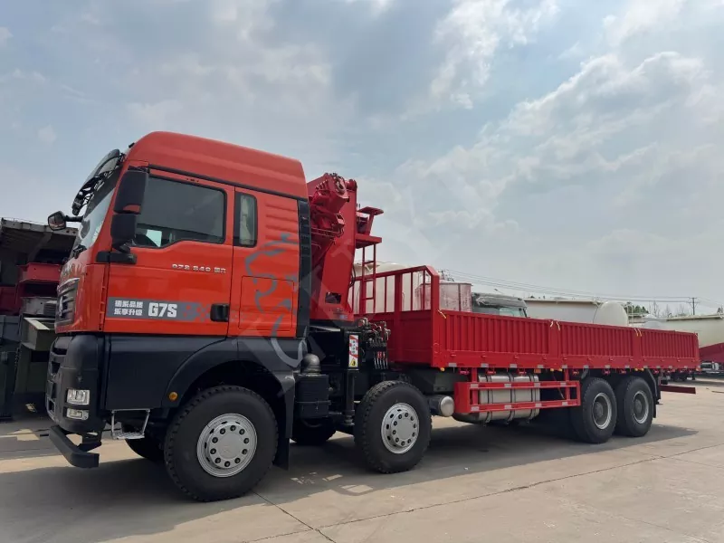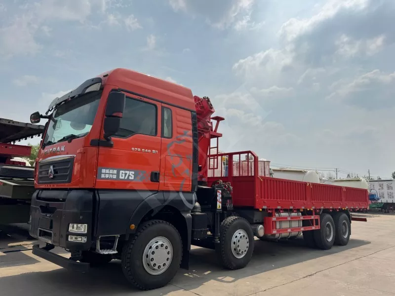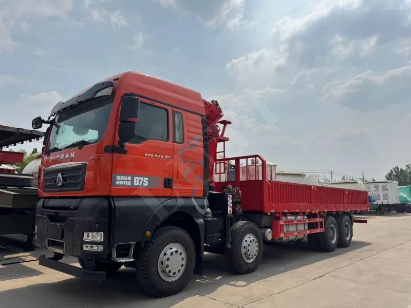 Shandeka G7S 540HP Nemzeti VI alváz, Sinotruk sebességváltó, 3,7. A síkágyas teherautó és egy összecsukható kardaru hozzáadása erőteljes emelési képességeket biztosít, és több mezőhöz, például építkezéshez és logisztikához alkalmas.