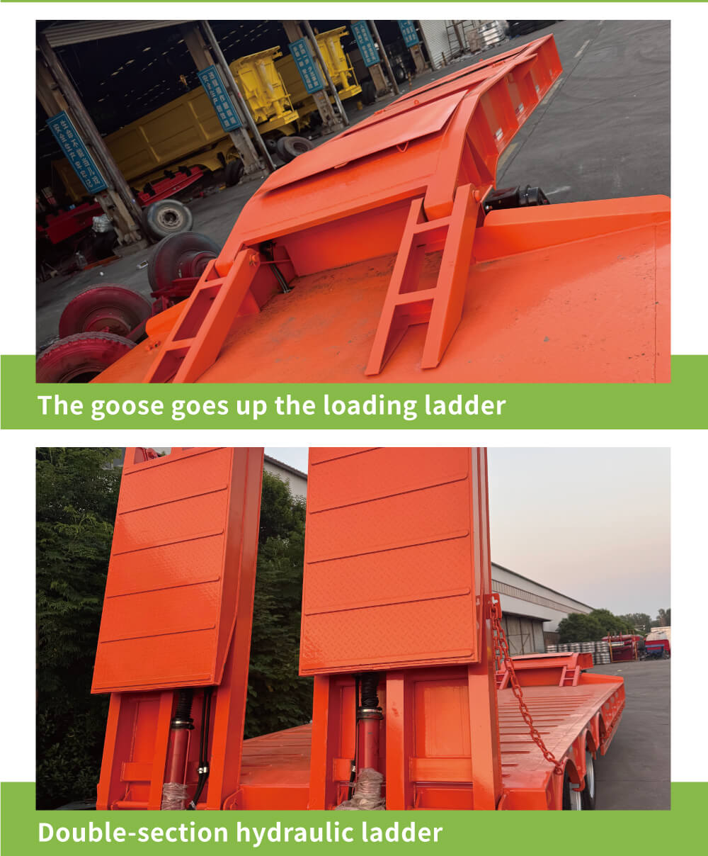 A LUYI 3 tengelyes 60 tonnás levehető hattyúnyakú, alacsony ágyású félpótkocsi, amelyet Shandongban, Kínában gyártanak, egy professzionális teherszállító pótkocsi. Teste nagy szilárdságú acélból készült, mérete 1700030001500mm. A szerkezet masszív és elegendő a hely, ami lehetővé teszi a nehéz rakományok stabil rakodását, és alkalmazkodik a különféle teherautó-vontatási műveletekhez.