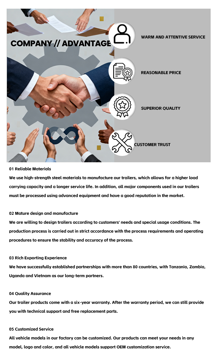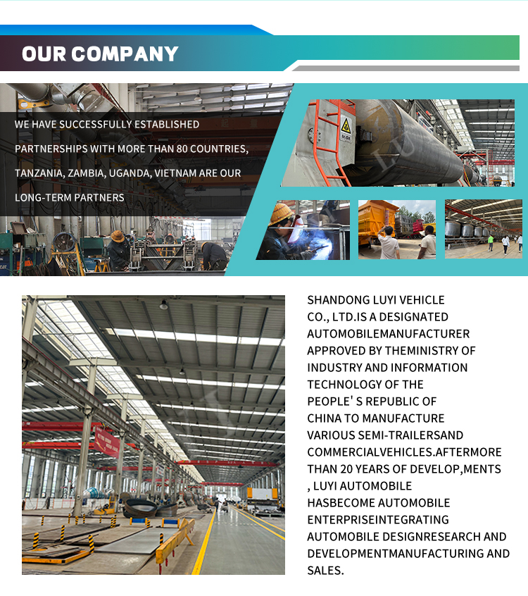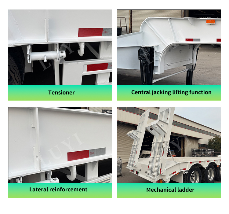 A karosszéria színe testreszabható, hogy megfeleljen a különféle használati igényeknek és a márkaimázs követelményeinek. Professzionális félpótkocsi-gyártóként a LUYI szigorú minőség-ellenőrzést és gyakorlatias terméktervezést követ, hatékony és biztonságos megoldásokat kínálva minden típusú nehéz szállítási forgatókönyvhöz. Megbízható partnere külkereskedelmi vállalkozásának!