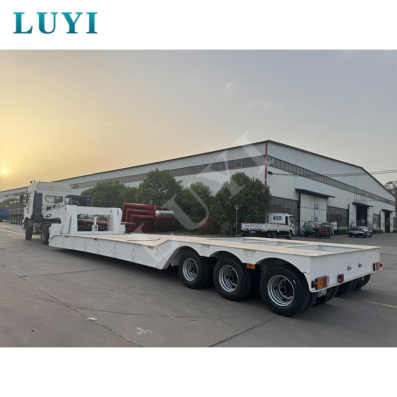 A kínai Shandongban gyártott LUYI 3-Line 6-Axle Folding Gooseneck Lowbed Semi-Trailer egy professzionális félpótkocsi, amelyet kifejezetten nagy teherbírású berendezések szállítására terveztek.